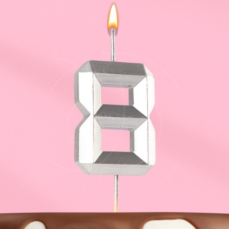 Доставка Свеча декоративная Цифра "8" Серебряная грань из магазина в вашем городе: