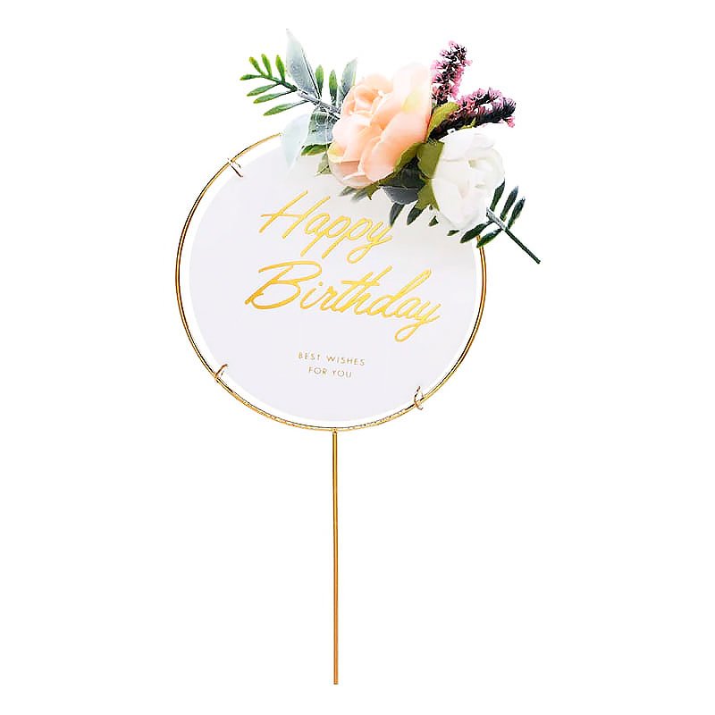 Доставка Топпер декоративный акриловый в рамке "Happy Birthday" Белый Круглый из магазина в вашем городе: